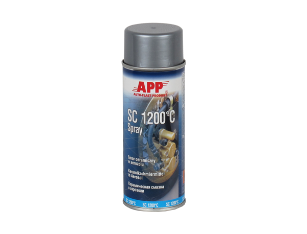 APP SC 1200°C – Keramikschmiermittel – Spray – 400 ml. Ein gegen hohe Temperaturen beständiges Schmiermittel zur Anwendung auf stark mechanisch und thermisch belasteten Elementen, erleichtert Demontage der früher geschmierten Elemente, schützt vor Korrosion und vor dem Anhaften der geschmierten Elemente. Temperaturbereich: von -40°C bis +1200°C Anwendung: ABS – Bremsanlagen, Montage der Bremsklötze, Montage von Lambda-Sonde, Industrieofen, Montage der Auspuffsystems und der hohen Temperaturen ausgesetzten Systeme Eigenschaften: Das Schmiermittel schützt vor elektrolytischer Korrosion und ist gegen chemische Mittel beständig (Wasser, Salze, schwache Säure und Basen), beständig gegen ungünstige Wetterbedingungen. Das Schmiermittel hat eine Pastenkonsistenz, enthält Keramikmoleküle, eignet sich zur Anwendung nach einer Minute nach Verdampfung des Lösemittels.